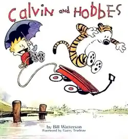 ![]() The cover of Calvin and Hobbes, the first collection of comic strips, released in April 1987. | |
