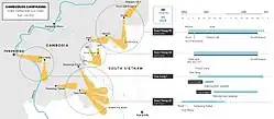 ![]() The area of the campaign with detail showing units involved, the area is also known as the Parrot's Beak, Cambodia | |||||||