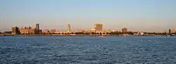 Camden also experienced dramatic shifts in its population demographic. Immigration from Eastern Europe made them the leading ethnic group by 1920, whereas it had previously been German, British, and Irish immigrants.[43] In 1926, a bridge connecting New Jersey and Pennsylvania opened, which was formally named the Benjamin Franklin Bridge in 1956.[44] The project cost $37 million (equivalent to $657 million in 2024), split evenly between New Jersey and Pennsylvania.[45] The goal was to reduce ferry traffic between Philadelphia and Camden.