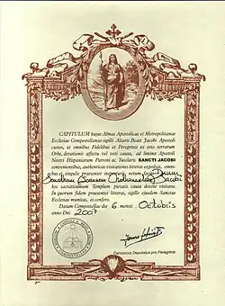 - ^ "The Compostela". Confraternity of Saint James. Archived from the original on 29 January 2015. Retrieved 6 August 2016.