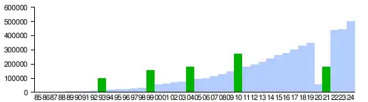 ![]() Green bars are holy years |