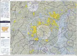 Aviation chart showing restricted airspace in the Washington DC area. Camp David is the light circle to the north.