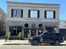 Warhol was able to get exposure for his comic strip (and newspaper ad) paintings by using them as a backdrop for his Bonwit Teller window design in April 1961.[23] Leo Castelli visited Warhol's gallery in 1961 and said that the work he saw there was too similar to Lichtenstein's.[24][25] However, Warhol's and Lichtenstein's comic artwork differed in subject matter and techniques. E.g., Warhol's comic-strip figures were humorous pop-culture caricatures, such as of Popeye, while Lichtenstein's were generally of stereotypical hero and heroines and were inspired by comic strips devoted to adventure and romance.[26] Castelli chose not to represent both artists at that time. He would, in November 1964, be exhibiting Warhol, his Flower Paintings, and then Warhol again in 1966.[27] In February 1962, Lichtenstein displayed at a sold-out exhibition of cartoon pictures at Castelli's eponymous Leo Castelli Gallery, ending the possibility of Warhol exhibiting his own cartoon paintings.[28] Lichtenstein's 1962 show was quickly followed by Wayne Thiebaud's April 17, 1962, one-man show at the Allan Stone Gallery, featuring all-American foods, which irritated Warhol, who felt it jeopardized his own food-related works.[29] Warhol was considering returning to the Bodley gallery, but Bodley's director did not like his pop artworks.[9] In 1961, Warhol was offered a three-man show, by Allan Stone at his 18 East 82nd Street Gallery, with Rosenquist and Robert Indiana; but all three were insulted by this proposition.[30]