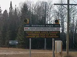 The International Boundary is commonly said to be the world's "longest undefended border"—it is not militarized, although civilian law enforcement is present.[36] It is illegal to cross the border outside border controls, as anyone crossing the border must be checked under immigration[37][38] and customs laws.[39][40] The relatively low level of security measures contrasts with the United States–Mexico border, one-third as long as the Canada–U.S. border, which is actively patrolled by U.S. Customs and Border Protection personnel to prevent drug trafficking and illegal immigration.