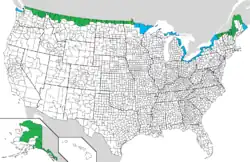 | 1 | Alaska | 2,475 km (1,538 mi) | 1 | Ontario | 2,727 km (1,682 mi) | |