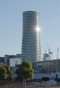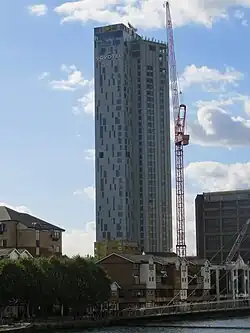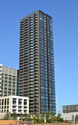 150 | 492 | 43 | 2019 | Residential tower.[38] The first residential development to be built in Wood Wharf.[39] |