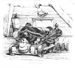 The lower tier of 17th-century English ships of the line were usually equipped with demi-cannons, guns that fired a 32-pound (15 kg) solid shot, and could weigh up to 3,400 pounds (1,500 kg).[135] Demi-cannons were capable of firing these heavy metal balls with such force that they could penetrate more than a metre of solid oak, from a distance of 90 m (300 ft), and could dismast even the largest ships at close range.[136] Full cannon fired a 42-pound (19 kg) shot, but were discontinued by the 18th century, as they were too unwieldy. By the end of the 18th century, principles long adopted in Europe specified the characteristics of the Royal Navy's cannon, as well as the acceptable defects, and their severity. The United States Navy tested guns by measuring them, firing them two or three times—termed "proof by powder"—and using pressurized water to detect leaks.[137]