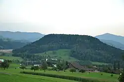 Near the southern shore of the lake of Ägeri is the site of the Battle of Morgarten, won by the Swiss in 1315.[5] In this battle the powerful Habsburgs were defeated. The hamlet of Morgarten (Municipality of Oberägeri) borders the canton of Schwyz and is home to the Morgarten Battle Monument (German: Morgarten Denkmal). The actual battlefield is just across the border in the hamlet of Schornen (Municipality of Sattel) in the canton of Schwyz.