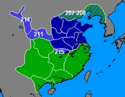| 211 | 56 | Defeated Ma Chao, Han Sui and other western warlords at the Battle of Tong Pass |
