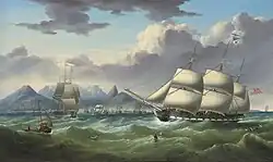 VOC traders imported thousands of slaves to the Cape of Good Hope from the Dutch East Indies and other parts of Africa.[17] By the end of the eighteenth century the Cape's population swelled to about 26,000 people of European descent and 30,000 slaves.[18][19]