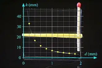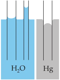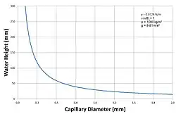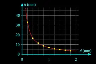 The height h of a liquid column is given by Jurin's law[31]