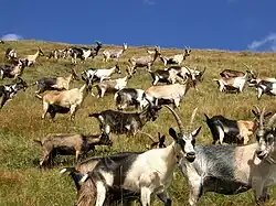 - Domestic goat (Capra hircus; includes feral goat; domesticated from C. aegagrus and sometimes considered a subspecies of it)