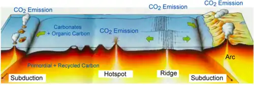 87. ^ Wong, Kevin; Mason, Emily; Brune, Sascha; East, Madison; Edmonds, Marie; Zahirovic, Sabin (11 October 2019). "Deep Carbon Cycling Over the Past 200 Million Years: A Review of Fluxes in Different Tectonic Settings". Frontiers in Earth Science. 7 263. Bibcode:2019FrEaS...7..263W. doi:10.3389/feart.2019.00263.