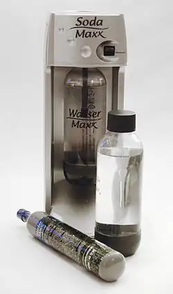 Soda makers or soda carbonators are appliances that carbonate water with multiple-use carbon dioxide canisters. A variety of systems are produced by manufacturers and hobbyists.[41][42] The commercial units may be sold with concentrated syrup for making flavored soft drinks.