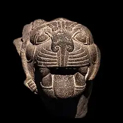 In 2015, for the first time, the name of Sangara has been documented in a hieroglyphic Luwian inscription originally erected in Carchemish, itself.[40] The six extant pieces of the basalt stele of the goddess Kubaba from Karkemish, currently housed in three different museums, have finally been all discovered and assembled together. This stele was made by king Kamani of Karkemish around 790 BC.[40] The top part of this stele was drawn in 1876 by George Smith and transported in 1881 to the British Museum.