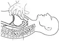 The patient's head is commonly tilted back (a head-tilt and chin-lift position) for improving the airflow if ventilations can be used. However, when a patient seems to have a possible serious injury in the spinal cord (in the backbone, either at the neck part or the back part), the head must not be moved except if that is completely necessary, and always very carefully, which avoids further damages for the patient's mobility in the future.[27] And, in the case of babies, the head is left straight, looking forward, which is necessary for the ventilations, because of the size of the baby's neck.[28]