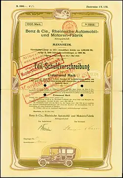 Because of its size, in 1899, Benz & Cie. became a joint-stock company with the arrival of Friedrich von Fischer and Julius Ganß, who came aboard as members of the Board of Management. Ganß worked in the commercialization department, which is somewhat similar to marketing in contemporary corporations.[21]