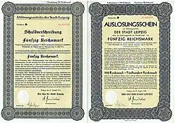 Bond of the city of Leipzig, issued 20 August 1930, signed by mayor Goerdeler.