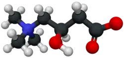 Carnitine is a quaternary ammonium compound involved in metabolism in most mammals, plants, and some bacteria.[1][2][3][4] In support of energy metabolism, carnitine transports long-chain fatty acids from the cytosol into mitochondria to be oxidized for free energy production, and also participates in removing products of metabolism from cells.[3] Given its key metabolic roles, carnitine is concentrated in tissues like skeletal and cardiac muscle that metabolize fatty acids as an energy source.[3] Generally individuals, including strict vegetarians, synthesize enough L-carnitine in vivo.[1]