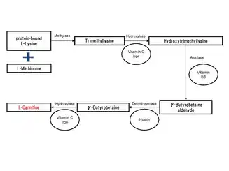 - ^ Cox RA, Hoppel CL (December 1973). "Biosynthesis of carnitine and 4-N-trimethylaminobutyrate from 6-N-trimethyl-lysine". The Biochemical Journal. 136 (4): 1083–90. doi:10.1042/bj1361083. PMC 1166060. PMID 4786530.