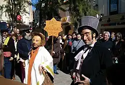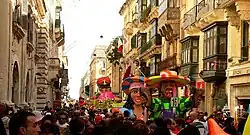 Holy Week processions in Spain include crowds who vociferously insult the figure of Jesus. Irreverence, parody, degradation, and laughter at a tragicomic effigy of God can be seen as intensifications of the sacred order.[46] In 1466, in festivities sponsored by Pope Paul II, Jews were forced to race naked through the streets of the city of Rome. Clement IX stopped these practices and in their place assessed a heavy tax on the Jews to help pay for the costs of the city's Carnival celebrations.[47]