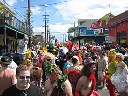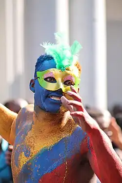 Furthermore, some cultures use Carnival as a method of empowering themselves in spite of social conflicts. For example, when the Caribbean Carnival was established as a result of French settlers, even the slaves had their version of the masquerade, where they would reverse roles to mock those of higher social status.[53] Along with empowering individuals for a period of time, despite their typical status, Carnival brings communities together. In a day where all are meant to perform a "mask" that differs from their typical identity, all members of a society are able to connect through their theatricality and satire.[54]
