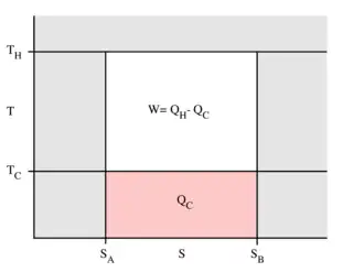 In this case, since it is a reversible thermodynamic cycle (no net change in the system and its surroundings per cycle)[1][2]