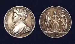 Official coronation medal of Queen Caroline in 1727 by J. Croker