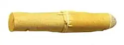 Paper cartridges have been in use for centuries, with a number of sources dating their usage as far back as the late 14th and early 15th centuries. Historians note their use by soldiers of Christian I, Elector of Saxony and his son in the late 16th century,[19][20] while the Dresden Armoury has evidence dating their use to 1591.[21][19] Capo Bianco wrote in 1597 that paper cartridges had long been in use by Neapolitan soldiers. Their use became widespread by the 17th century.[19] The 1586 round consisted of a charge of powder and a bullet in a paper cartridge. Thick paper is still known as "cartridge paper" from its use in these cartridges.[22] Another source states the cartridge appeared in 1590.[23] King Gustavus Adolphus of Sweden had his troops use cartridges in the 1600s.[24] The paper formed a cylinder with twisted ends; the ball was at one end, and the measured powder filled the rest.[25]