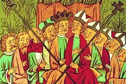 He organized a meeting of kings in Kraków in 1364 at which he exhibited the wealth of the Polish kingdom.[21] Casimir is the only king in Polish history to both receive and retain the title of "Great", as Bolesław I is more commonly known as "the Brave".[22]