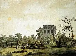 Friedrich began his formal study of art in 1790 as a private student of artist Johann Gottfried Quistorp at the University of Greifswald in his home city, at which the art department is now named Caspar-David-Friedrich-Institut[9] in his honour. Quistorp took his students on outdoor drawing excursions; as a result, Friedrich was encouraged to sketch from life at an early age.[4] Through Quistorp, Friedrich met and was subsequently influenced by the theologian Ludwig Gotthard Kosegarten, who taught that nature was a revelation of God.[4] Quistorp introduced Friedrich to the work of the German 17th-century artist Adam Elsheimer, whose works often included religious subjects dominated by landscape, and nocturnal subjects.[10] During this period he also studied literature and aesthetics with Swedish professor Thomas Thorild. Friedrich entered the prestigious Academy of Copenhagen four years later, where he began by making copies of casts from antique sculptures before proceeding to drawing from life.[11]