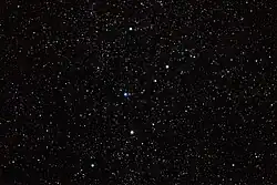 Two Messier objects, M52 (NGC 7654) and M103 (NGC 581), are located in Cassiopeia; both are open clusters. M52, once described as a "kidney-shaped" cluster, contains approximately 100 stars and is 4,600 light-years from Earth.[38] Its most prominent member is an orange-hued star of magnitude 8.0 near the cluster's edge. M103 is far poorer than M52, with only about 25 stars included. It is also more distant, between 8000 and 9500 light-years from Earth.[39] Its most prominent member is actually a closer, superimposed double star; it consists of a 7th-magnitude primary and 10th-magnitude secondary.[24]