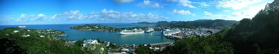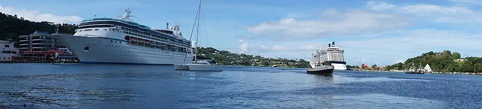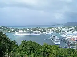 One of the major tourist areas in St. Lucia, Castries is a port of call for cruise ships. They dock at Pointe Seraphine, to the north of the harbour.[12]