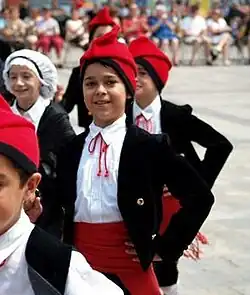 Catalans (Catalan, French and Occitan: catalans; Spanish: catalanes; Italian: catalani; Sardinian: cadelanos or catalanos)[a] are a Romance-speaking ethnic group[11][12][13] native to Catalonia, who speak Catalan.[14] The current official category of "Catalans" is that of the citizens of Catalonia, a nationality and autonomous community in Spain[15] and the inhabitants of the Roussillon historical region in Southern France, today the Pyrénées Orientales department,[16] also called Northern Catalonia[17][18][19] and Pays Catalan in French.[20][21][22][23]