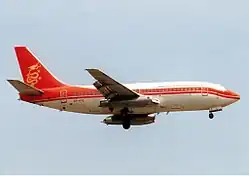 Boeing 737-200 on final approach at Kai Tak Airport in original livery