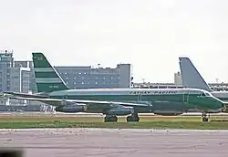 In the 1970s, Cathay Pacific installed a computerised reservation system and flight simulators.[29] In 1971, Cathay Pacific Airways received the first Boeing aircraft 707-320B.[30] By 1972, it had five 707s.[31] The new aircraft colour was known as Brunswick green.[32] In July 1976, it began operating a Boeing 707 freighter from Hong Kong to Seoul, Bangkok and Singapore.[33]