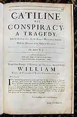- At least two major dramatists have written tragedies about Catiline: Ben Jonson, the English Jacobean playwright, wrote Catiline His Conspiracy in 1611, depicting Catiline as "a sadistic anti-hero";[103] Catiline was the first play by the Norwegian "father of modern drama" Henrik Ibsen, written in the aftermath of the 1848 revolutions and depicting Catiline as hero struggling against his world's corruption.[98]