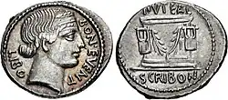 Catiline was a member of an ancient patrician family, the gens Sergia, who claimed descent from Sergestus, a Trojan companion of Aeneas.[2] While Sallust says he was one of the nobiles,[3] which implies a consular heritage,[4] the specifics are unclear: no member of the gens Sergia had held the consulship since the second consulship of Gnaeus Sergius Fidenas Coxo in 429 BC; a few other Sergii had served in the consular tribunate, but the last was in 380 BC.[5]