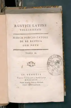 - Cato's De Agricultura: Latin text, English translation, information on the manuscripts, prefatory material.