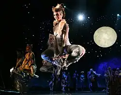- ^ The method in which Grizabella ascends to the Heaviside Layer varies depending on the production. In the original London and Broadway productions, she climbs up a stairway that emerges from the ceiling. In the 1990s and 2000s scaled-down touring productions, she ascends via a flying saucer-like vessel.[30]