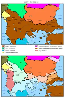 The Serbian government, having failed to get Albania, now demanded for the other spoils of the First Balkan War to be reapportioned, and Russia failed to pressure Serbia to back down. Serbia and Greece allied against Bulgaria, which responded with a pre-emptive strike against their forces and so began the Second Balkan War.[48] The Bulgarian army crumbled quickly after the Ottoman Empire and Romania joined the war.