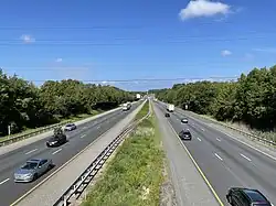 Cecil County is also bisected east-to-west by Interstate 95, known as the John F. Kennedy Memorial Highway in Maryland. The highway provides a major artery for traffic between the Baltimore-Washington area to the southwest and the Philadelphia and New York and New Jersey regions to the northeast. The Office of Management and Budget has designated Cecil County as part of the Philadelphia-Camden-Wilmington metropolitan area.