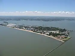 In 1878, James West opened a group of bathhouses near the beach.[14] By 1880, a local newspaper had observed that the popularity of the beach was increasing, with picnicking on the grounds becoming a popular pastime.[14] The popularity of the peninsula attracted the attention of Benjamin F. Dwelle and Captain William Slackford, who leased land on the peninsula in 1882 and built eight new bathhouses, a dance hall, and wooden walkways on the beach.[9] The steamboats R.B. Hayes and Lutts provided transport to Biemiller's Cove and Cedar Point Light.[13] Building on early success, Dwelle and Slackford continued to expand the offerings for their visitors each year and added picnic tables, cleared acres of brush, and built a baseball diamond.