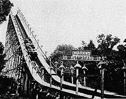 - 1892: Switchback Railway opens as the park's first roller coaster with a height of 25 feet (7.6 m) and a top speed of 10 mph (16 km/h).[13][22]