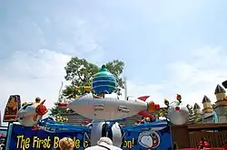 In 1996, Cedar Point opened Mantis, then the tallest, steepest, and fastest stand-up roller coaster in the world.[17] Originally, the ride was to be called "Banshee", but it was later changed after negative public reaction.[39] The discarded name would later be reused for Banshee at Kings Island in 2014.[40] In 1997, the park introduced HalloWeekends, a Halloween-themed event with haunted houses and mazes, which typically operates from September through late October.[41] Camp Snoopy debuted in 1999 featuring eight Snoopy-themed attractions, with the exception of a Tilt-A-Whirl. The area also features a junior roller coaster built by Vekoma, Woodstock Express.[42]
