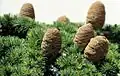 Cedars have a similar cone structure to firs (Abies) and were traditionally thought to be most closely related to them, but genetic evidence supports a basal position in the whole of the subfamily Abietoideae.[11][12][13]