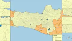 | Gouvernement Jogjakarta | Kulon Progo, Bantul, Gunungkidal and Slemen plus City of Yogyakarta |