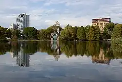 The Lake in Central Part with a high-rise building in the background