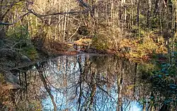Olmsted often clashed with the park commissioners, notably with Chief Commissioner Green.[128][132] Olmsted resigned in June 1862, and Green was appointed to Olmsted's position.[133][134] Vaux resigned in 1863 because of what he saw as pressure from Green.[135] As superintendent of the park, Green accelerated construction, though having little experience in architecture.[133] He implemented a style of micromanagement, keeping records of the smallest transactions in an effort to reduce costs.[132][136] Green finalized the negotiations to purchase the northernmost 65 acres (26 ha) of the park which was later converted into a "rugged" woodland and the Harlem Meer waterway.[133][136]
