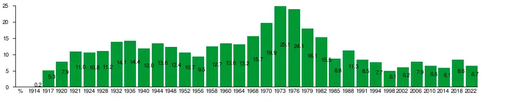 | 1973 | Thorbjörn Fälldin | 1,295,246 | 25.1 (#2) | 90 / 350